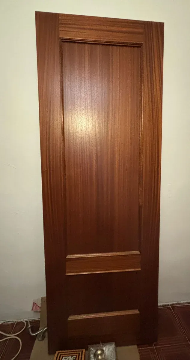 Detalles del productoPuerta de exterior con un bonito diseño de madera. Se vende con todos los complementos mirilla tb. Falta la cerradura de la puerta marco y bisagras,puede quedar muy elegante con todos los accesorios en dorado. 100€ con todos los complementos.La aconsejo para comunidad de vecinos no para puerta a pie de calle.Gracias