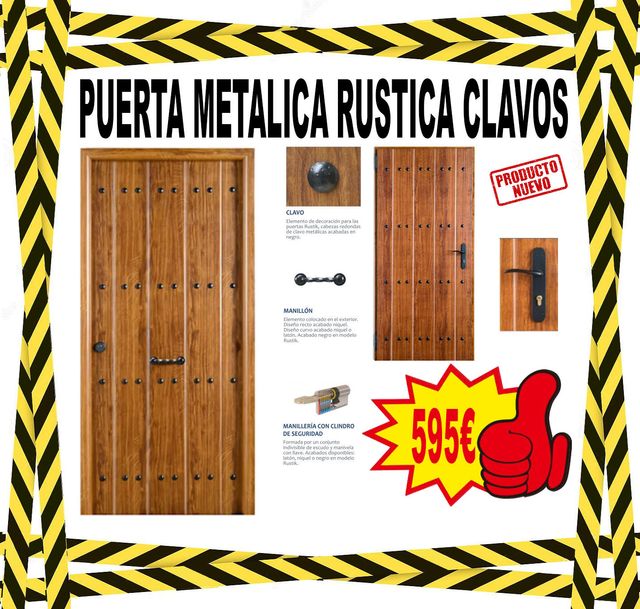 PUERTA EXTERIOR METÁLICA RUSTICA ROBLE CLAVOS