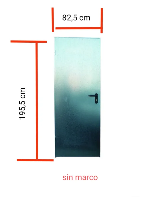 Detalles del productoPuerta metálica de una hoja, ideal para exteriores o espacios de trabajo. Sus medidas son 195,5 cm de alto y 82,5 cm de ancho. Con juego de llaves.