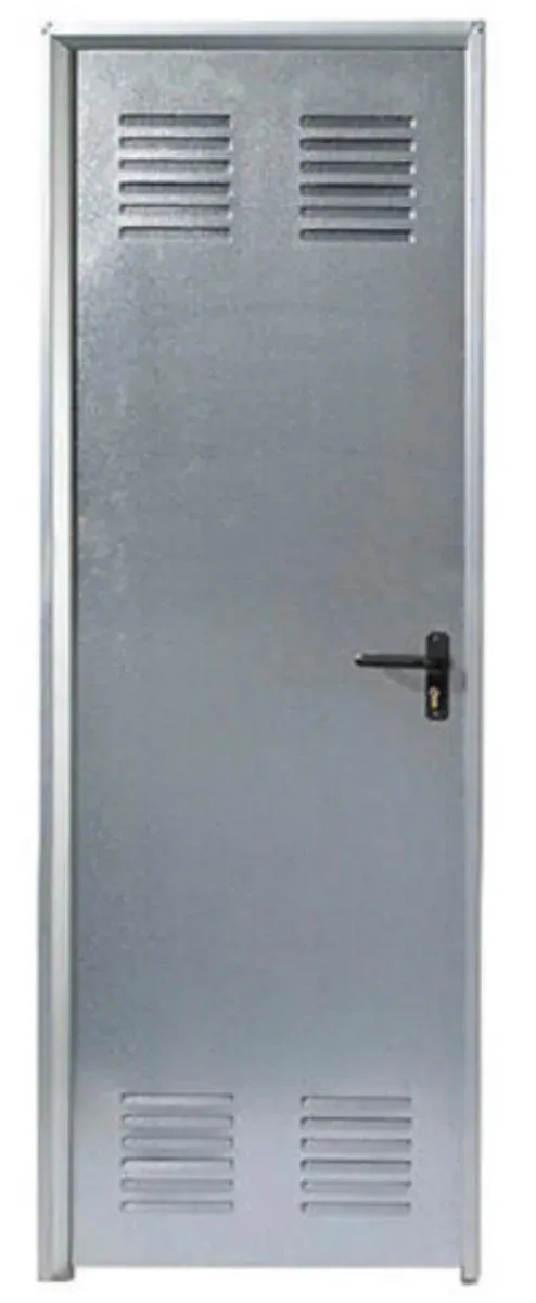 Detalles del productoPuerta de metal galvanizado con marco y cerradura.