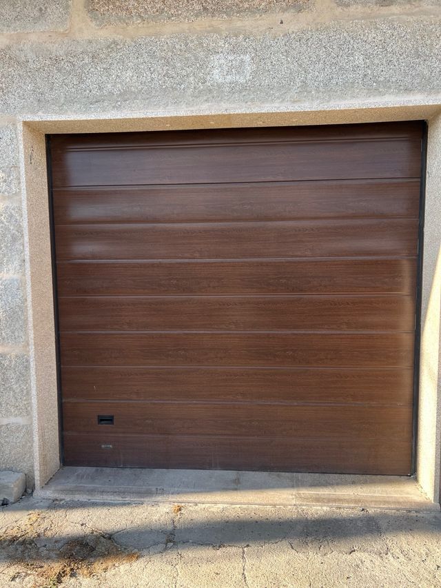 Puerta de garaje en buen estado. - Color marrón. - Acabado en madera. - Incluye mecanismo de apertura.
