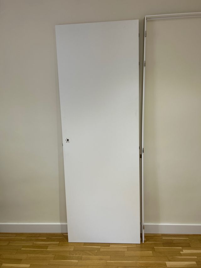 Puerta de madera hidrófuga de Leroy Merlin. Ideal para espacios que requieren resistencia a la humedad. - Material: Madera. - Acabado: Hidrófugo.