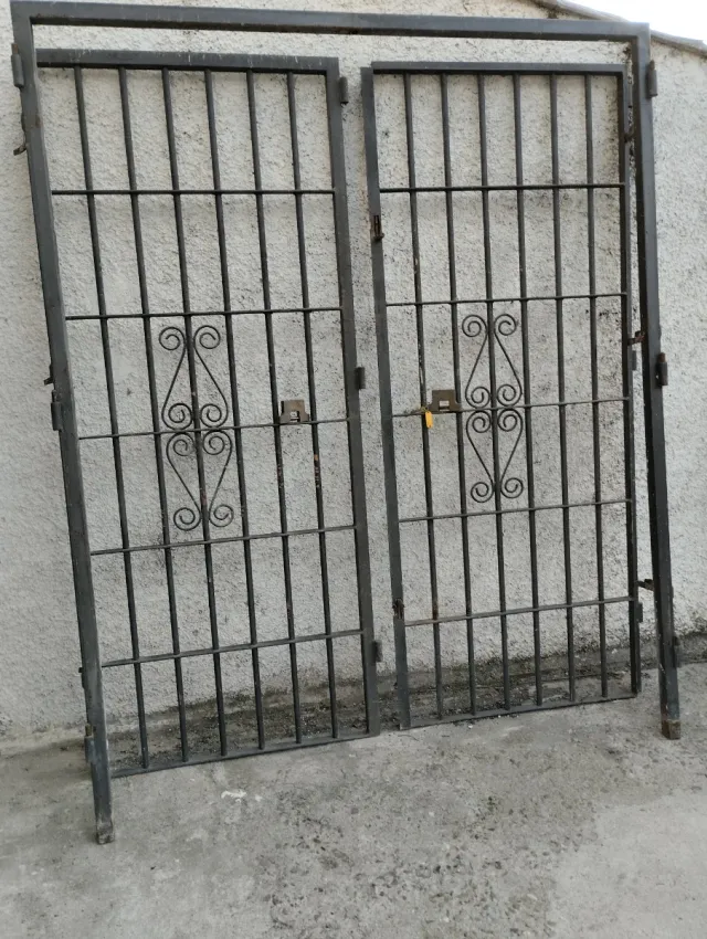 Detalles del productoPuerta de hierro de dos hojas con barrotes macizos. Ideal para exteriores.