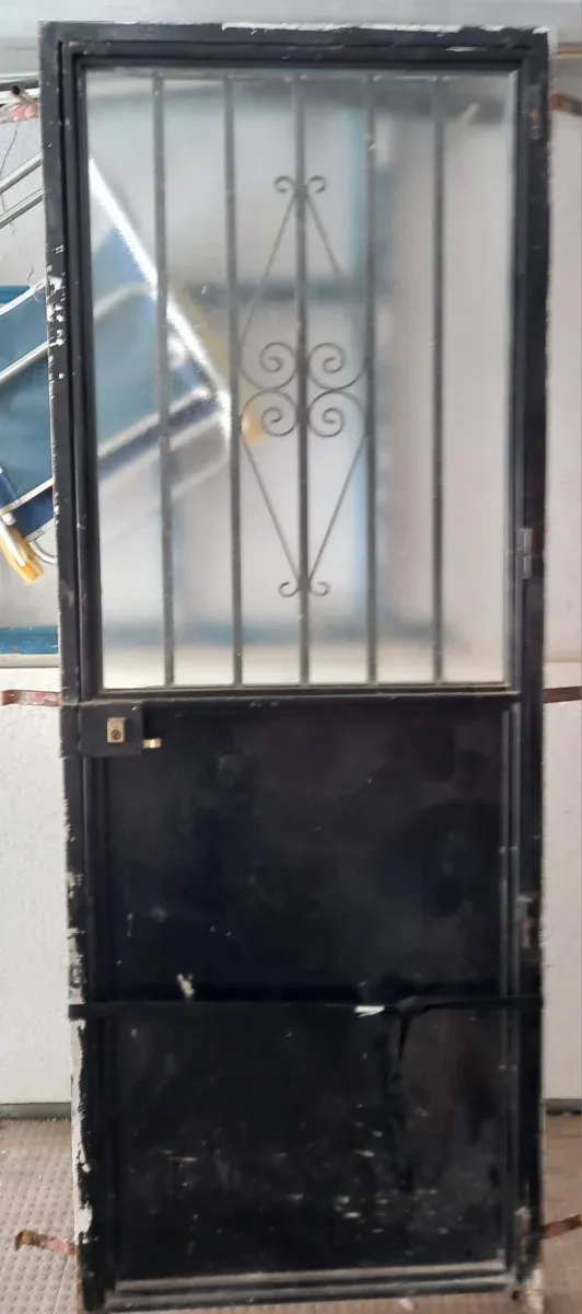 Detalles del productoPuerta de hierro con cristal y barrotes decorativos. Ideal para exteriores.