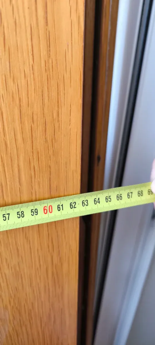Puerta interior de madera con acabado natural. - Material: Madera. - Color: Tono madera natural.
