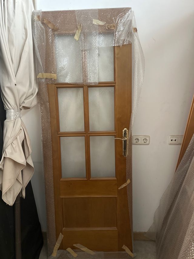 Detalles del productoPreciosa puerta interior de madera maciza con seis cristales. Se encuentra en perfecto estado, lista para instalar.