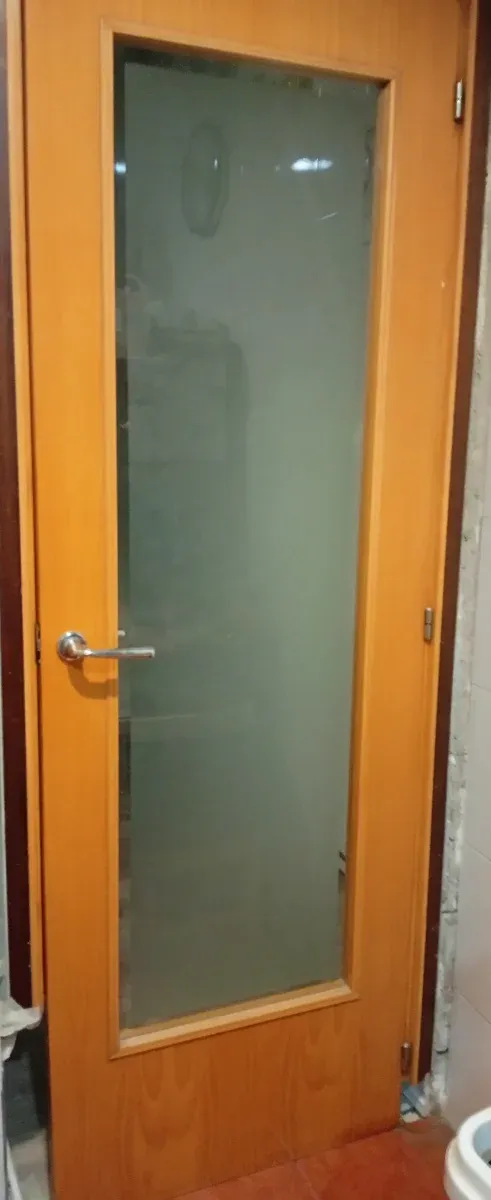 Puerta interior de madera con un panel de cristal. - Marco de madera. - Panel de cristal translúcido. 67*200cm