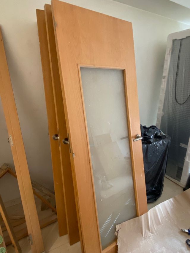 Detalles del productoPuerta interior de roble con un panel de cristal esmerilado.
