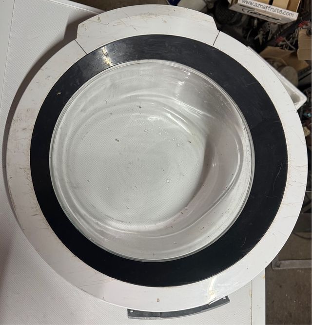 Puerta frontal de lavadora con cristal. Válida para bosch, balay y siemens. - Marco exterior blanco. - Aro negro decorativo y de sellado. - Cristal transparente.