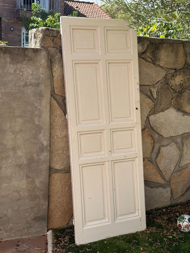 Detalles del productoPuerta de madera antigua con un diseño clásico de ocho paneles. Ideal para proyectos de restauración o para añadir un toque vintage a tu hogar.