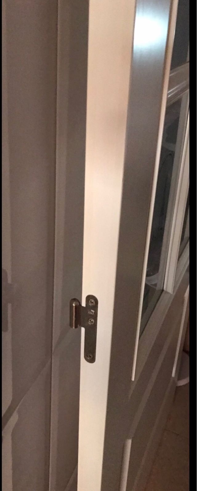 Puerta de madera en color blanco,con cristales con motivos sevillanos. Tiene estropeada bajo de la puerta ( pongo foto). Manilla dorada incluida.