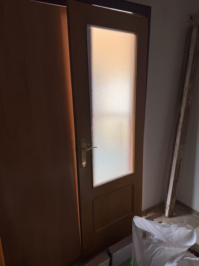 Puerta de madera con un panel de cristal esmerilado. - Marco de madera. - Tirador metálico dorado. - 72x203 cm 2 cristal, 3 normales de madera