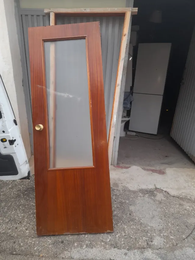 Puerta de madera con marco incluido. - Medida de la puerta: 72cm. - Marco de madera.