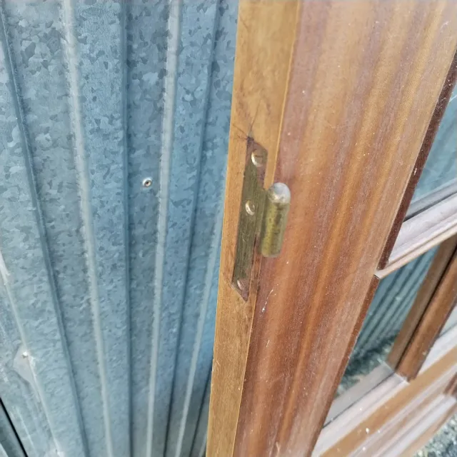 Puerta interior de madera con detalles de cristal. alto 200 cm ancho 82cm grosor 3,5 cm - Marco de madera. - Bisagra metálica.