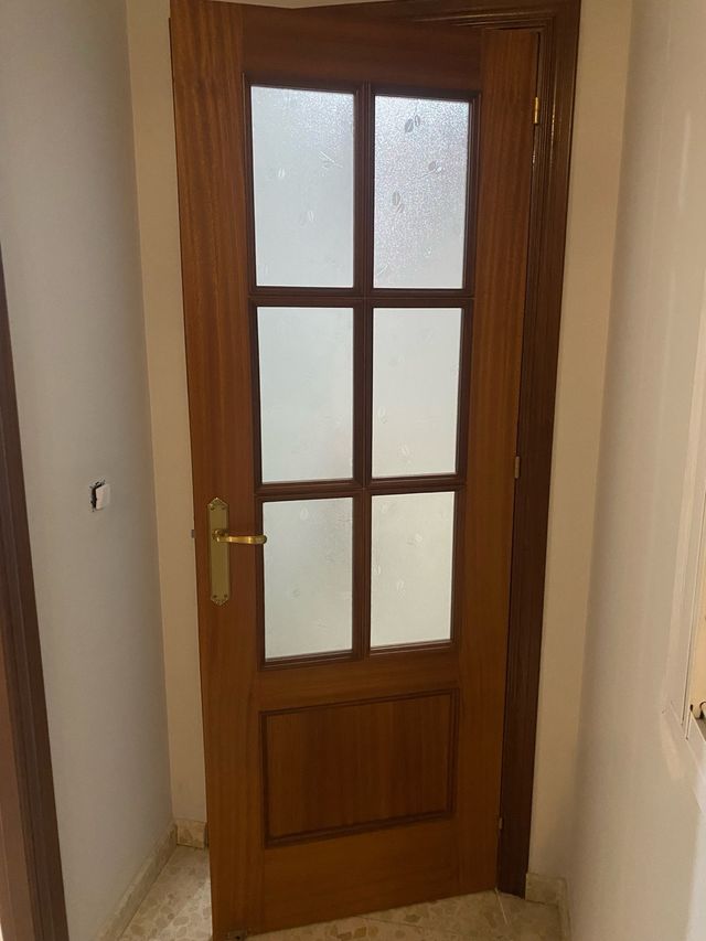Puerta madera maciza con cristales. Hay 3.