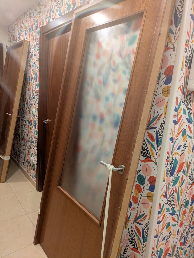 Detalles del productoPreciosa puerta de madera maciza con cristal ahumado y marco. Ideal para darle un toque elegante a tu hogar.