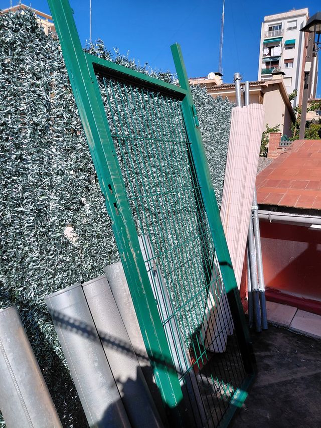 Detalles del productoPuerta de mallazo en color verde, ideal para cercados o accesos.