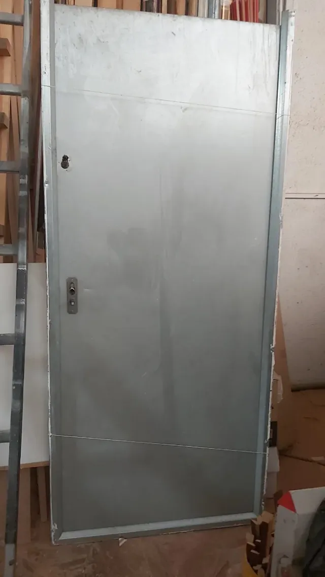 Puerta metálica de una sola hoja. Medida. Ancho 80cm Alto 195cm - Material: Metal. - Color: Gris.