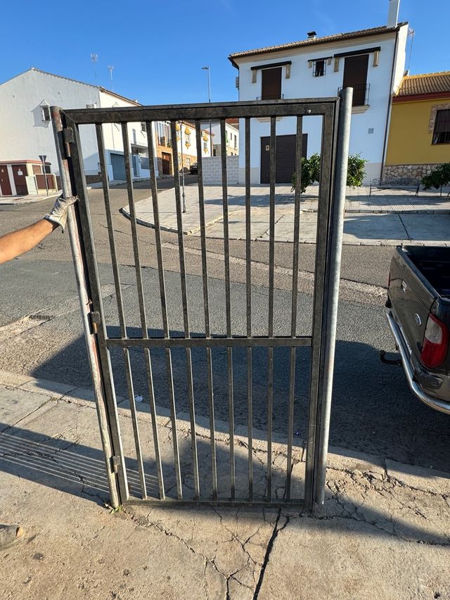 Puerta metálica de rejas, ideal para accesos exteriores. - Estructura de metal resistente. - Diseño de barrotes