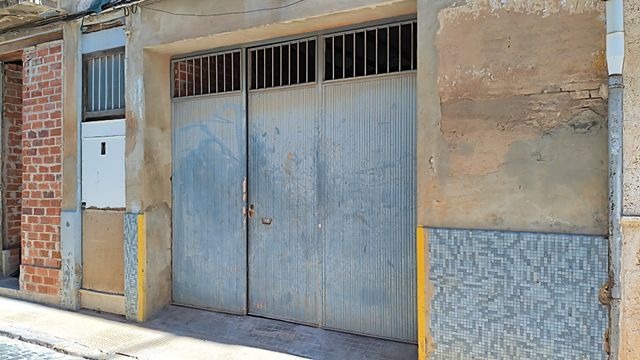 Puerta metálica plegable. - Material: Metal. - Color: Azul. Medidas: Ancho: 310cm Alto: 289cm Sección puerta: 90cm Sección laterales: 105cm