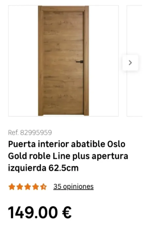 Se vende puerta Oslo Golden, se compró y resulta que no es la medida que buscabamos, no se ha usado. 50€. Medida: 62x202 cm
