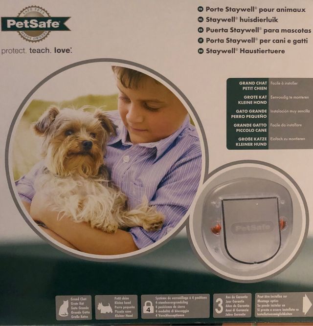 Detalles del productoPuerta para mascotas 292x292 de color transparente. Se puede poner en cristal, madera, pvc, metal, correderas etc.