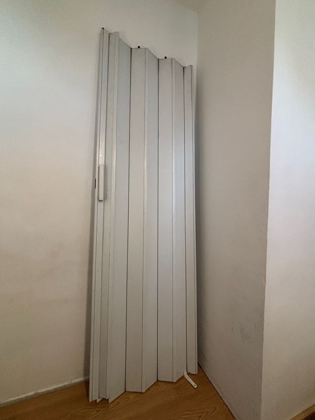 Puerta plegable de plástico con un tirador de madera. - Material: Plástico - Tirador: Madera - Sin Marco. Solo la puerta.