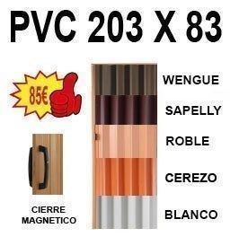Detalles del productoPuerta plegables fabricadas en PVC con un acabado mate de color madera o blanco. Es perfecta para generar privacidad en tu hogar ocupando poco espacio y sin tener que realizar obras. Es fácil de instalar y además permite recortar su tamaño, adaptándose perfectamente a cualquier espacio. Incluye bisagras flexibles y todos los accesorios necesarios para la instalación. Tiene un cierre de empuje magnético. PRODUCTO NUEVO EN SU EMBALAJE ORIGINAL