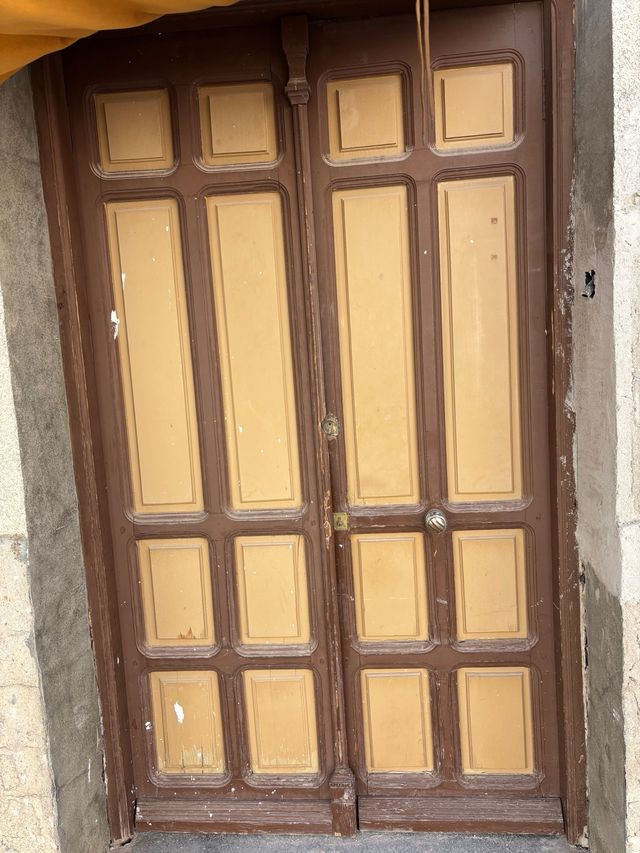 Detalles del productoPuerta principal de madera con un diseño clásico de paneles.
