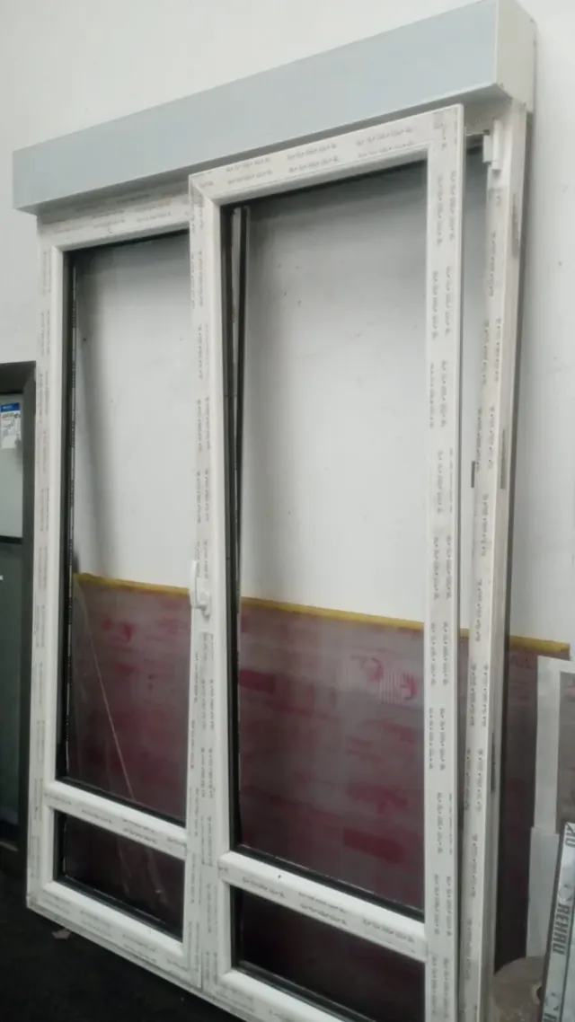 Puerta de PVC con medidas de 1500x2290 mm. Bicolor blanco int/verde ext y persiana eléctrica sin vidrios - Material: PVC. - Color: Blanco.