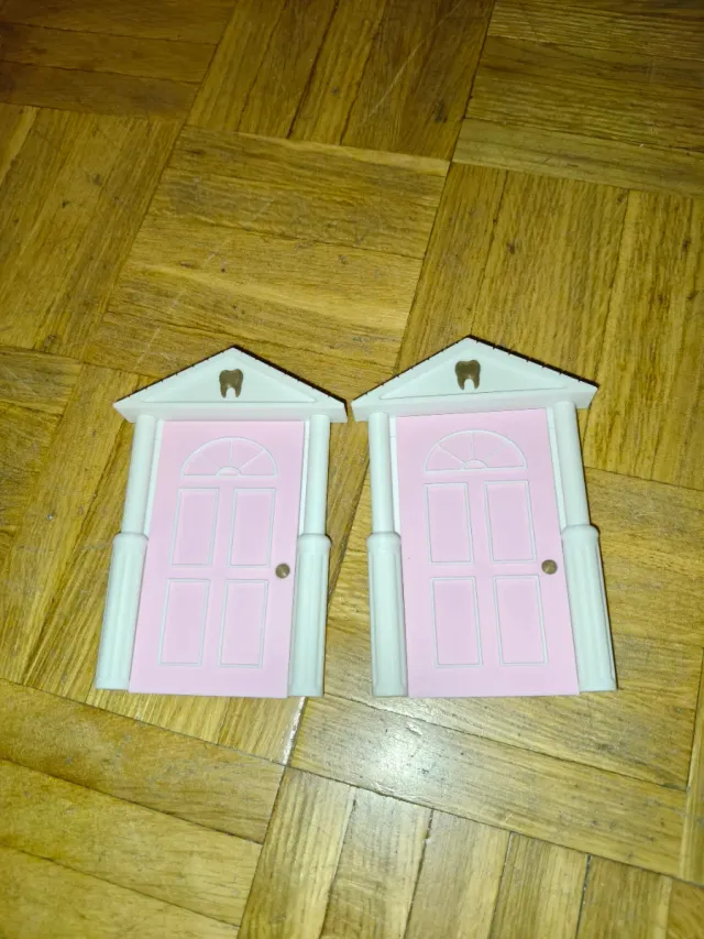 Set de dos puertas para el Ratón Pérez. Son de color rosa con detalles blancos y un pequeño pomo. Para poner en la pared. Medidas en las fotos. No sé abren. ⚠️No envío por UPS