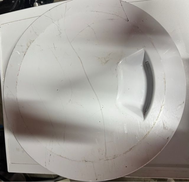 Detalles del productoPuerta redonda de repuesto para secadora en color blanco. Cuenta con un asa integrada para facilitar su apertura y cierre.