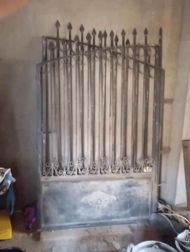 Elegante puerta verja de hierro forjado, ideal para accesos,necesita una limpieza,mejor ver.