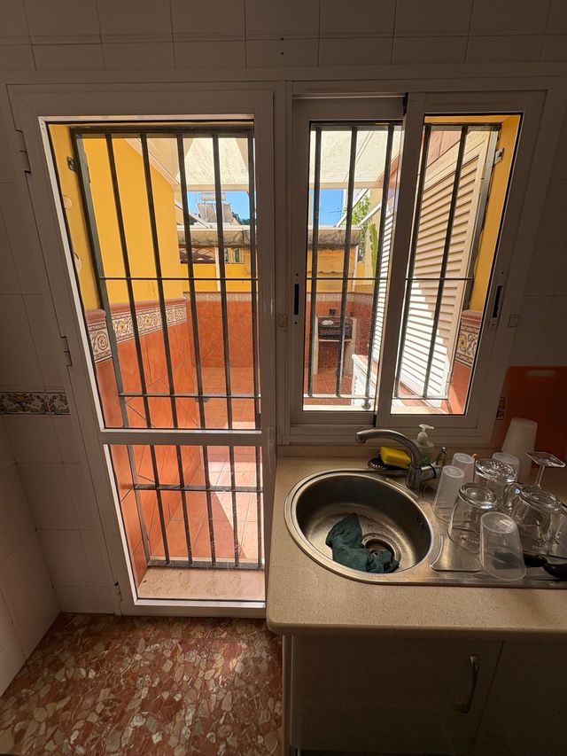 Conjunto de puerta y ventana de aluminio con reja de seguridad incluida. Ideal para exteriores. - Material: Aluminio. - Incluye reja de seguridad.