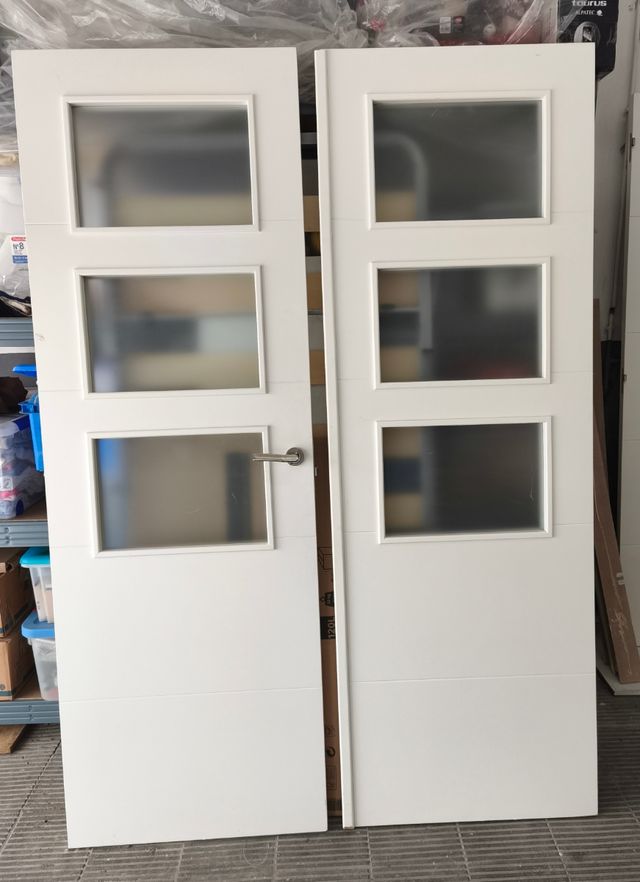 Puerta doble: Fija: 710mm L x 35mm A x 2087mmH móbil: 707mm L x 35mm A x 2087mm H Tapetas incluidas