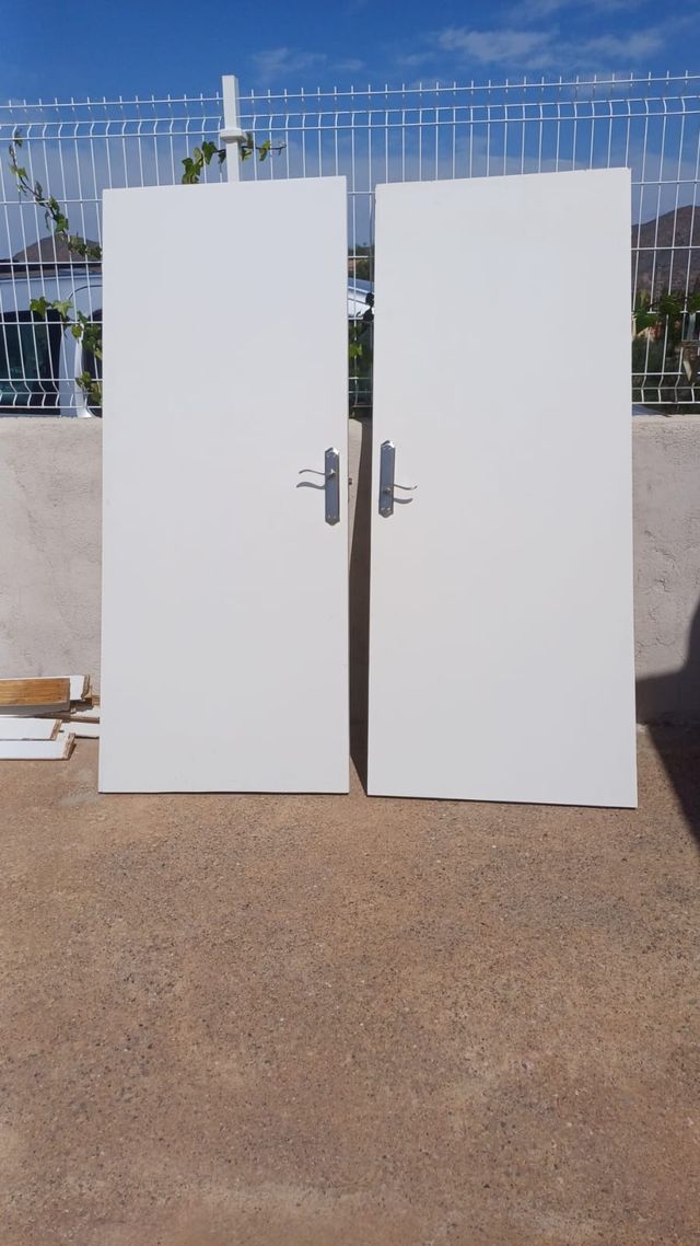2 m x 80cm con los herrajes, se abren de izquierda y son macicas. Llevan solo premarco 50 euros cada una