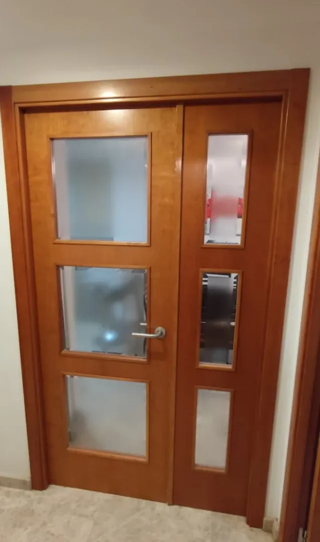 - 1 puerta salón doble y acristalada 115cm * 203cm ( hoja grande apertura izquierda)
