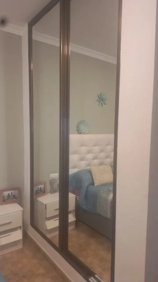 Conjunto de puertas correderas para armario empotrado. Ideales para optimizar el espacio. - Diseño moderno y funcional. - Acabado en espejo.