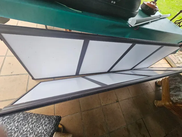 Detalles del productoSe venden puertas correderas de cristal blanco con marco negro.