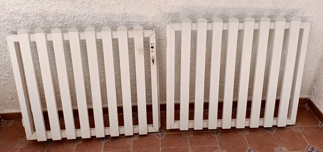Detalles del productoDos puertas de entrada de aluminio en color blanco. Son ideales para exteriores y cuentan con un diseño de barrotes verticales.##### Medidas : 95cm de ancho X 81cm de alto cada hoja ##### Precio a convenir #####