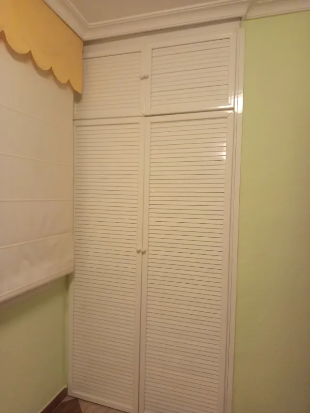 Conjunto de puertas de armario en color blanco. - Diseño con lamas horizontales. - Tiradores redondos.