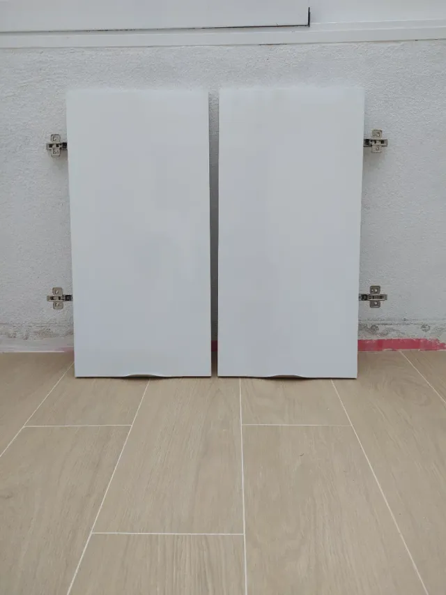 Dos puertas de armario blancas, listas para instalar. - Acabado liso y moderno. - Bisagras incluidas.