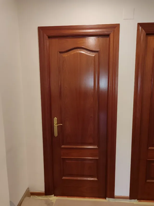 Detalles del productoConjunto de puertas de interior de madera con un acabado barnizado. Son ideales para cualquier estancia del hogar.