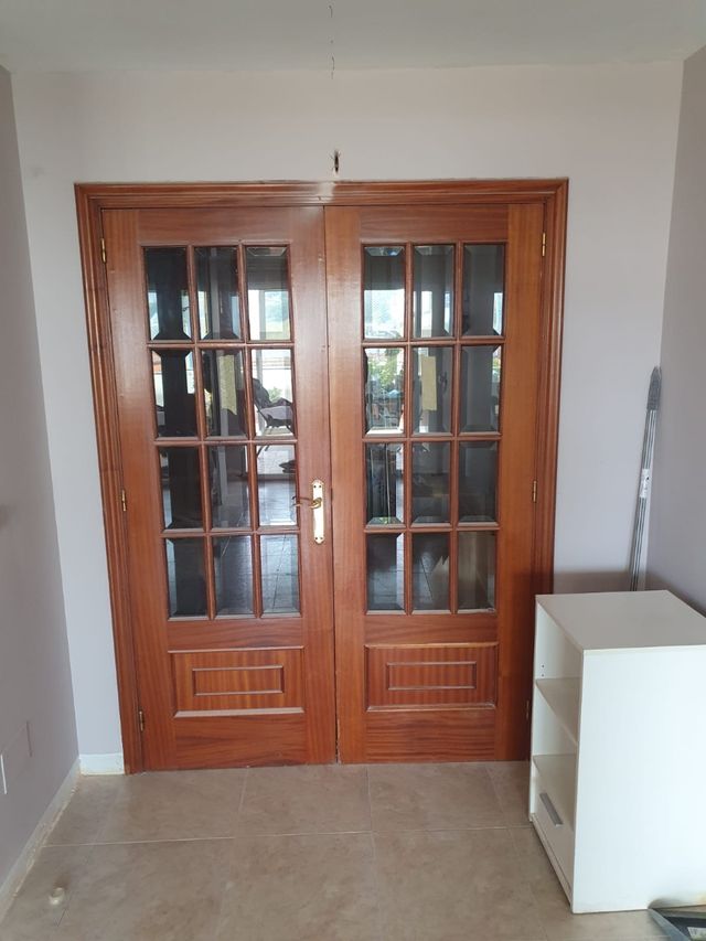 Se venden puertas de madera 1 puertas francesas con cristales 80€ 1 puerta salón con cristales 50€ 5 puertas ciegas 50€/ud Se recogen en PLAZA BARCELOS -PONTEVEDRA