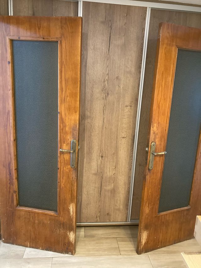 Se venden dos puertas de madera con cristal. 25€ cada una. - Material: Madera - Diseño: Con panel de cristal - Medidas 72cm ancho x 2 metros alto x 4cm de grosor