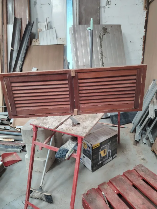 Se venden dos puertas de madera con diseño de lamas. Son ideales para dar un toque rústico a cualquier espacio.