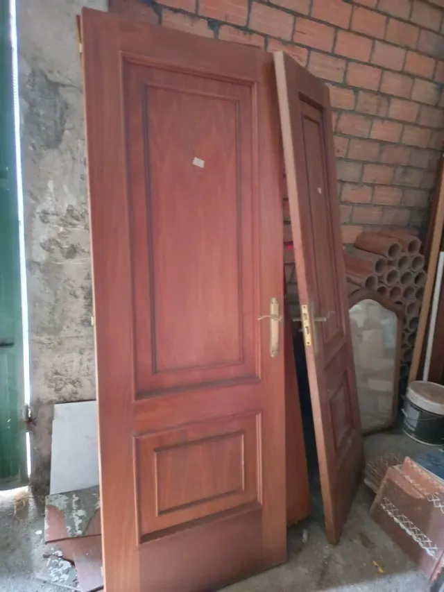 5 puertas en color sapelli, 2 de baño y 3 de habitación,en muy buen estado. Medidas puertas baño 62,5 ancho, medidas puertas de habitación 72,5 ancho.