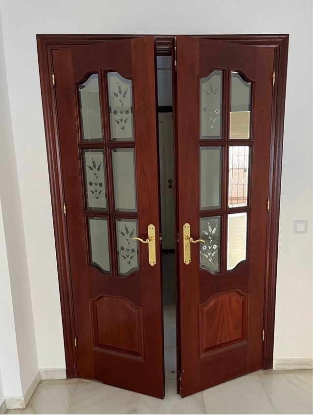 Puertas interiores de madera (algunas con detalles de cristal decorado)