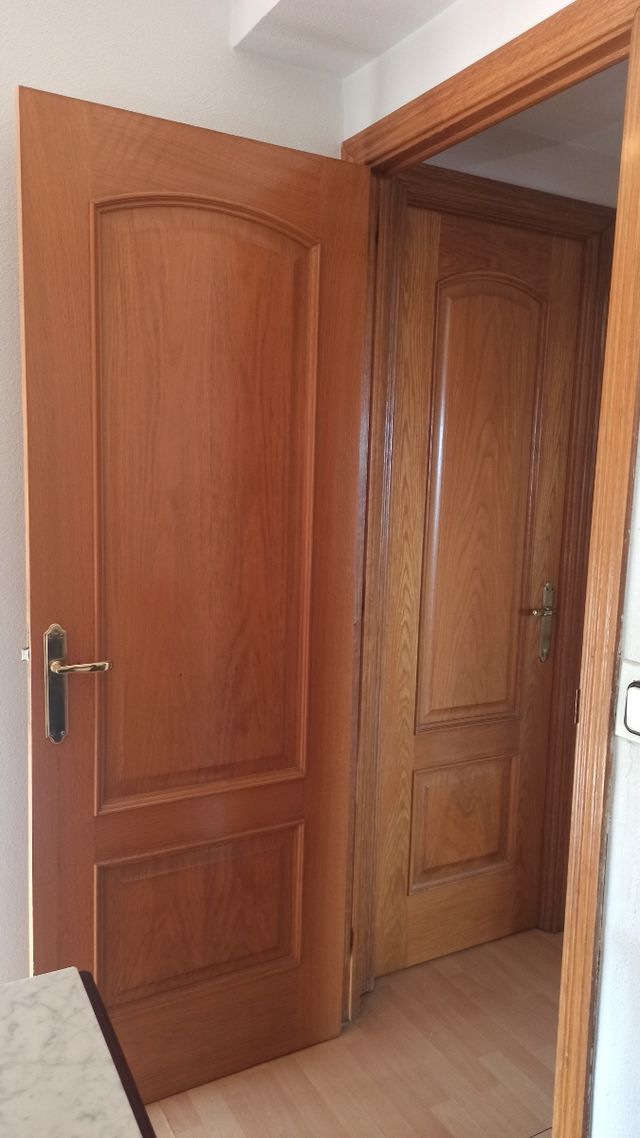 Detalles del productoTres Puertas interiores de madera maciza. Color roble miel. Con manillas incluidas.