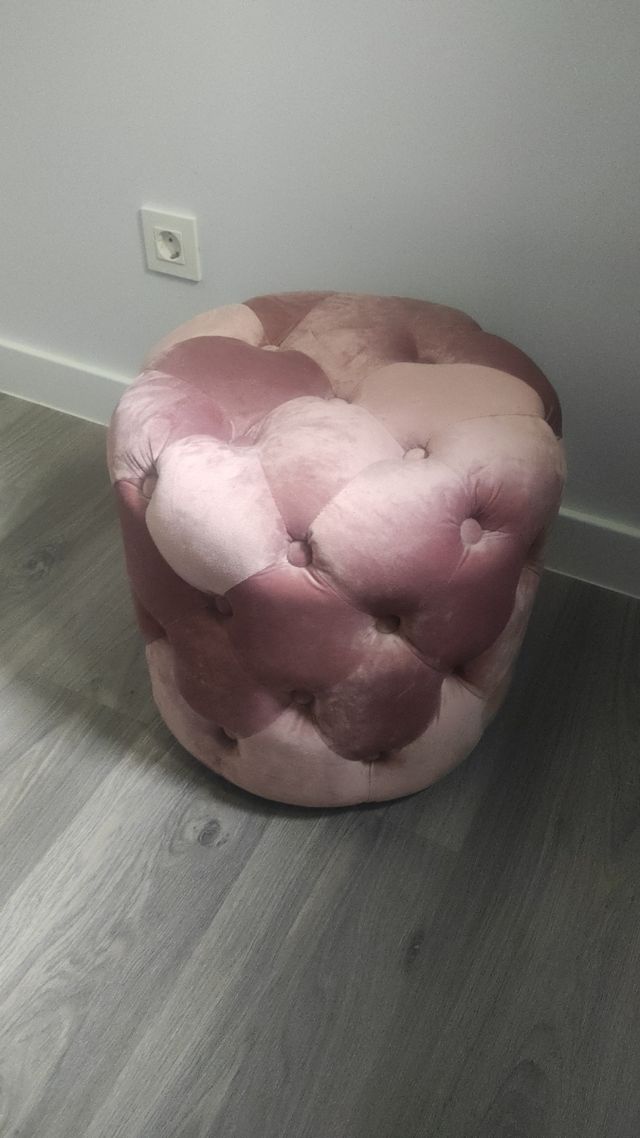 Puff terciopelo rosa capitoné